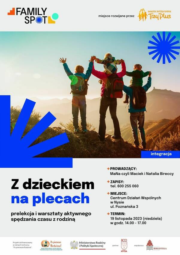 Podczas zajęć pokażemy na naszym przykładzie, że pojawienie się dziecka nie oznacza rezygnowania ze swoich dotychczasowych zainteresowań. Wspólne wędrówki nie tylko bardziej zbliżają rodzica do dziecka, ale są też piękną lekcją. Naszym celem jest zachęcenie rodziców z dziećmi do aktywnego spędzania czasu oraz przygotowanie rodzin do wędrówki. Po warsztatach uczestnicy będą zapoznani z podstawową wiedzą o szlakach turystycznych, prawidłowym wyposażeniem plecaków na wycieczkę górską i zasadami bezpieczeństwa w górach. Swoją wiedzę opieramy na kilkuletnim doświadczeniu zdobytym na wędrówkach górskich, kursach, wycieczkami z przewodnikami górskimi a także posiadaną wiedzą w zawodzie medycznym.